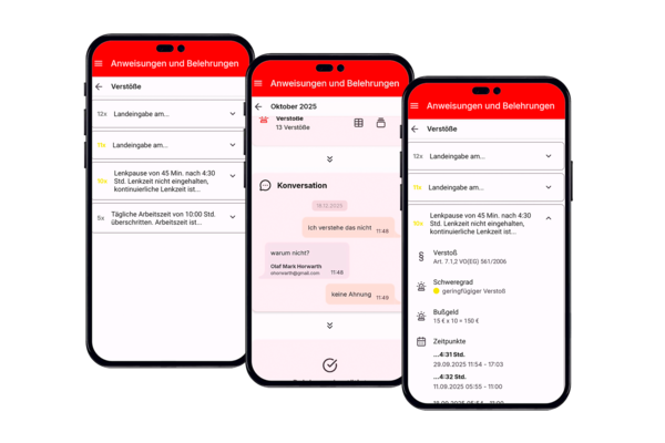 Nutzen Sie die SBS Fleet App als Fahreranweisung und verteilen Sie diese gegen Nachweis. So haben Sie eine Ihrer Pflichten im Rahmen des Fahrpersonalrechts erfüllt. Die App ermöglicht Ihnen durch den periodischen Wissenscheck, fortlaufend über die Kenntnisse Ihrer Fahrer informiert zu sein. So können Sie umgehend reagieren und ggf. nachschulen, wo Bedarf besteht. Sie weisen damit gegenüber den Behörden nach, dass Sie alles dafür tun, Zuwiderhandlungen gegen Vorschriften zu verhindern. Und das eben schon präventiv und nicht erst, wenn Verstöße begangen wurden.