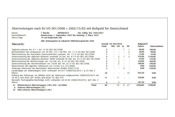 Wir prüfen den Bußgeldbescheid inhaltlich, indem wir die Fahrdaten des betroffenen Fahrers und Fahrzeugs genauestens analysieren und auswerten. Dabei erkennen wir leicht, ob es sich um tatsächliche Verstöße handelt oder ob die Verstöße z.B. auf versehentliche Fehlbedienungen am Digitalen Kontrollgerät zurückzuführen sind. Auch Softwarefehler sind nicht ausgeschlossen und führen häufig zu ungerechtfertigten Bescheiden.